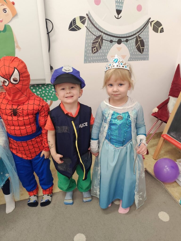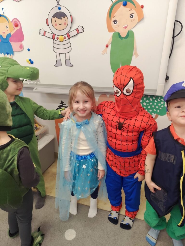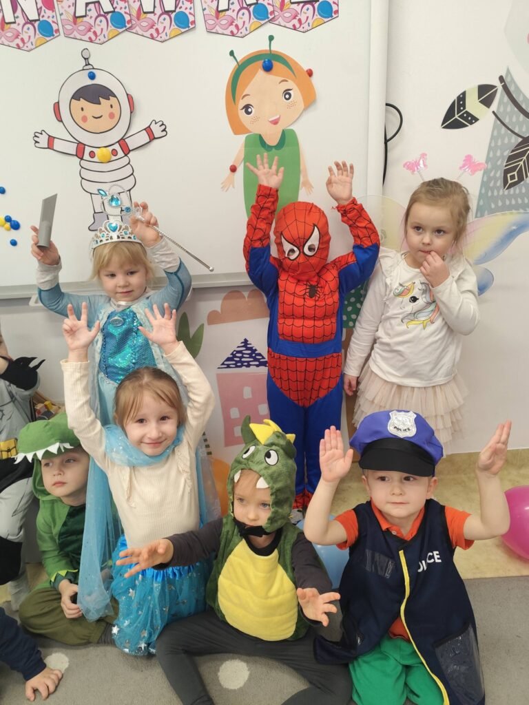 Dzieci zachwyciły wszystkich swoimi wspaniałymi strojami – pojawiły się księżniczki, superbohaterowie, zwierzątka i wiele innych fantastycznych postaci. Nie zabrakło wspólnych tańców, zabaw ruchowych oraz pamiątkowych zdjęć.