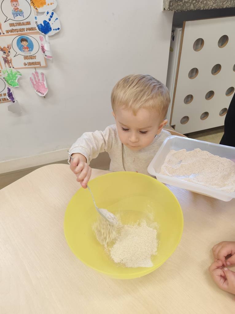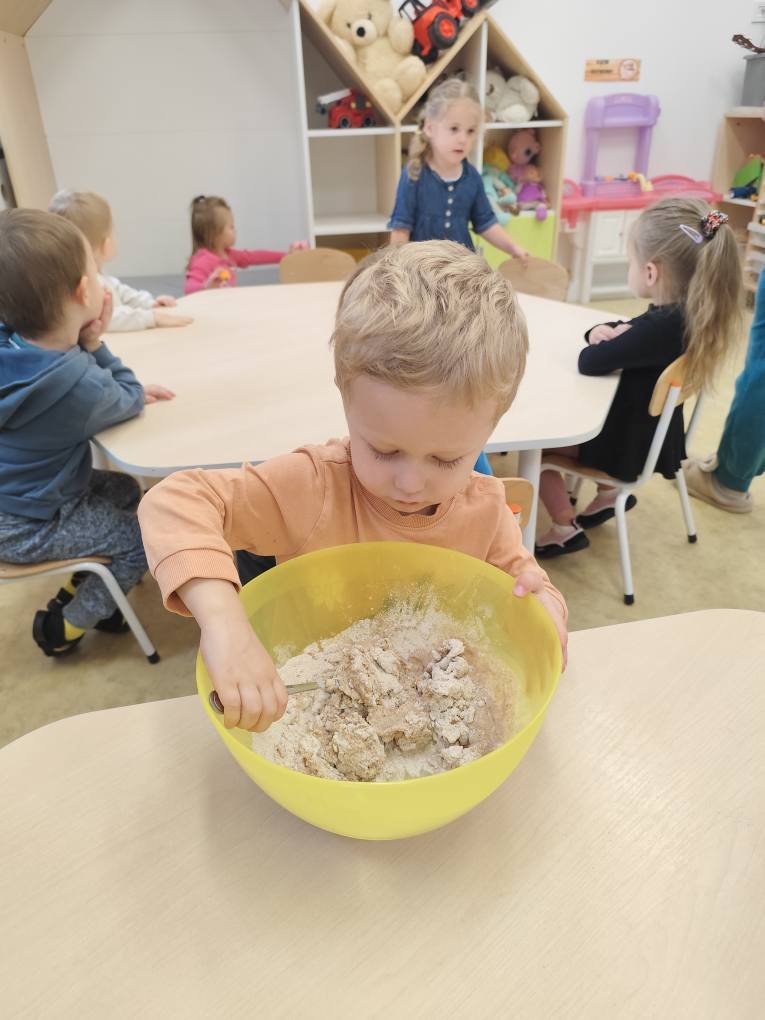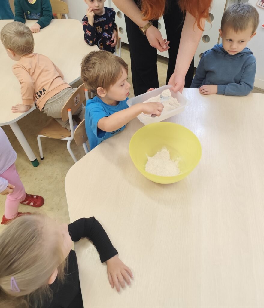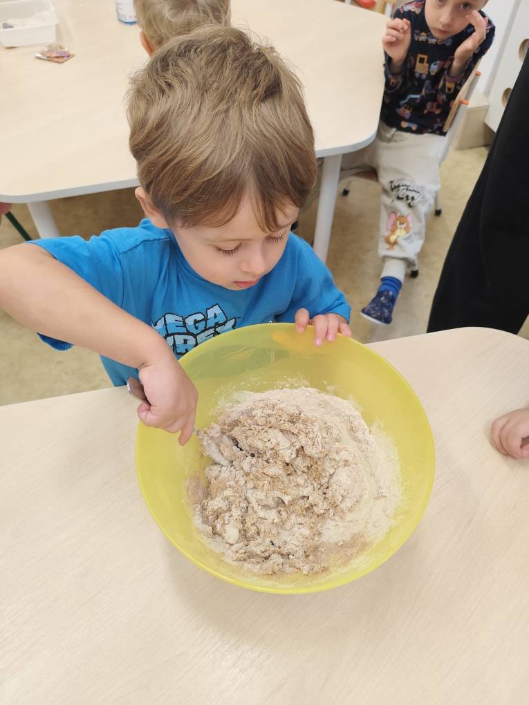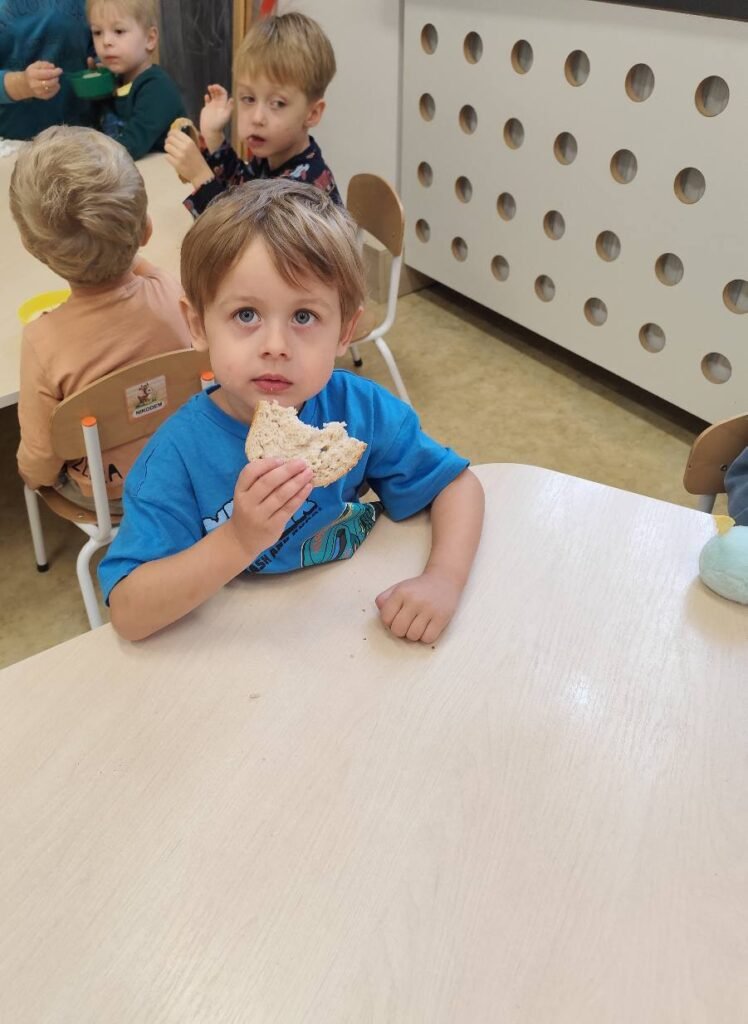 Dzieci dowiedziały się, skąd bierze się mąka, obserwowały, jak z ziaren powstaje pyszne pieczywo, a następnie samodzielnie zagniatały ciasto. Po upieczeniu aromatycznego chleba przyszła pora na najprzyjemniejszy moment – degustację! Świeży, chrupiący chleb smakował wyśmienicie, szczególnie w połączeniu z pyszną, ciepłą zupą.