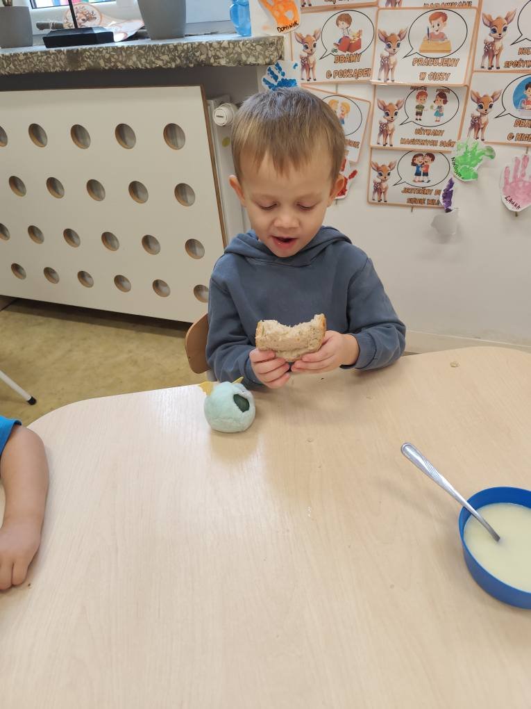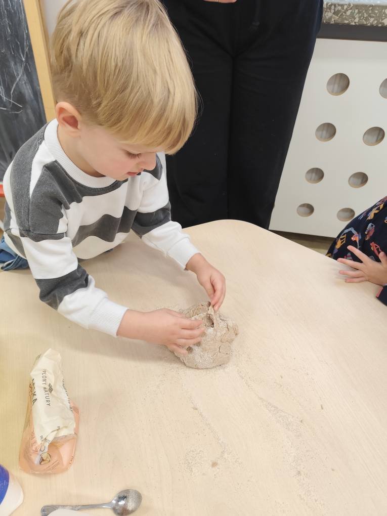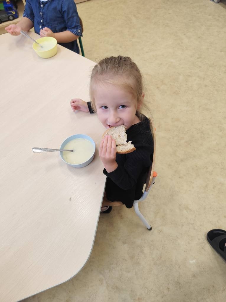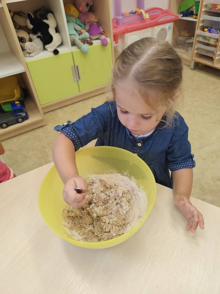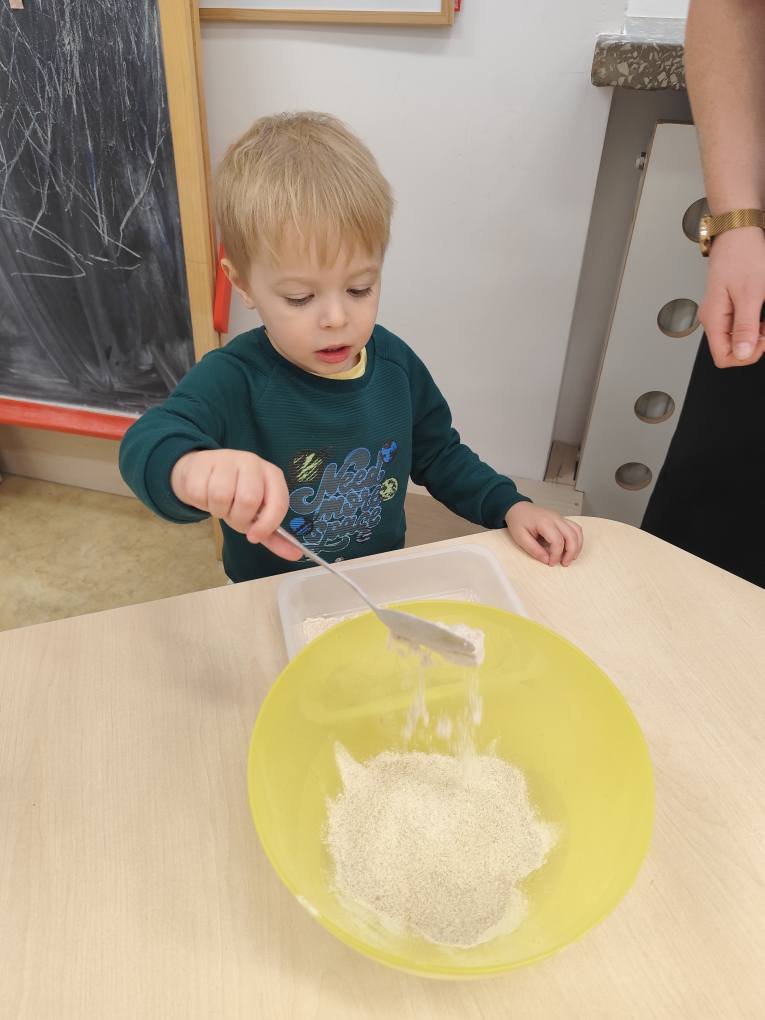 Dzieci dowiedziały się, skąd bierze się mąka, obserwowały, jak z ziaren powstaje pyszne pieczywo, a następnie samodzielnie zagniatały ciasto. Po upieczeniu aromatycznego chleba przyszła pora na najprzyjemniejszy moment – degustację! Świeży, chrupiący chleb smakował wyśmienicie, szczególnie w połączeniu z pyszną, ciepłą zupą.