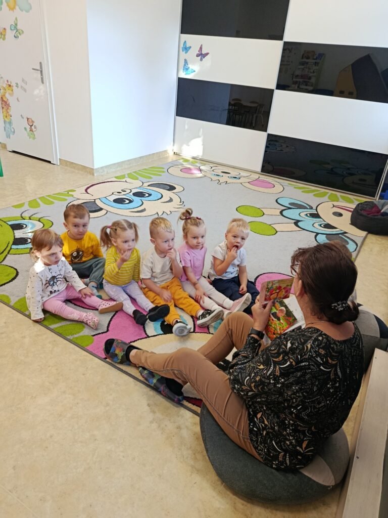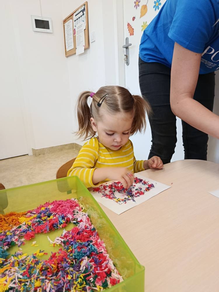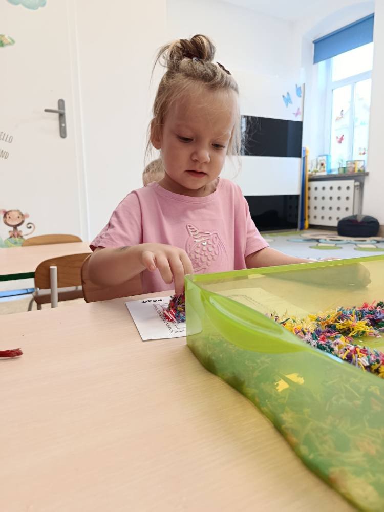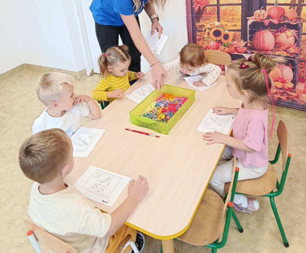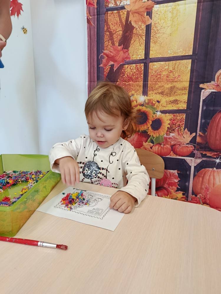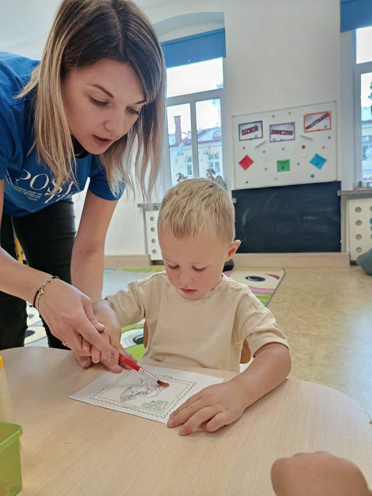 Po powrocie do żłobka dzieci stworzyły własny znaczek pocztowy ozdabiając go muliną 🦋