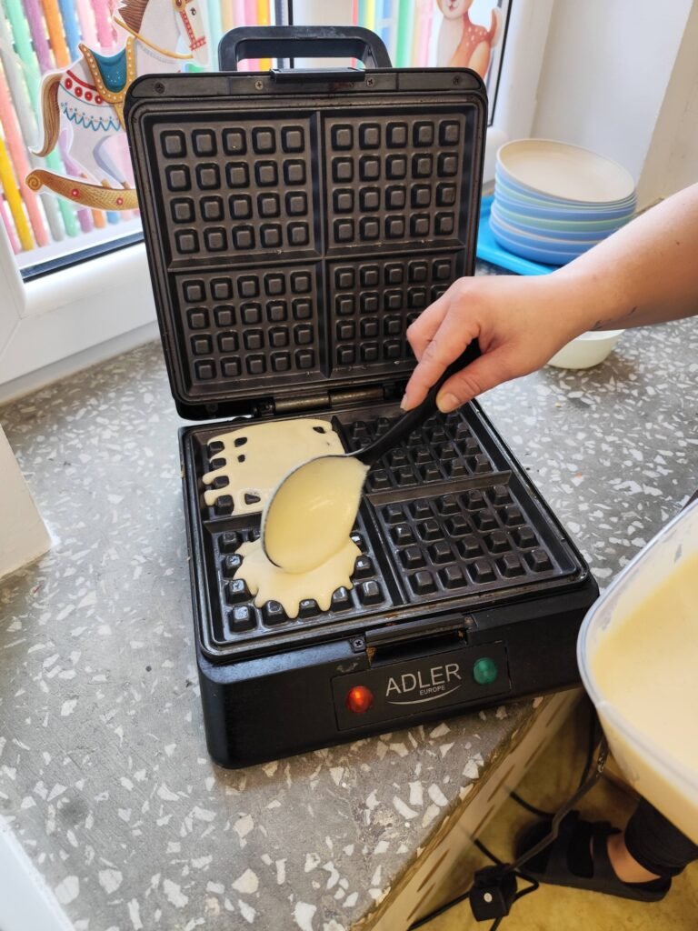 Dzieci zamieniły się w małych kucharzy i z ogromnym zaangażowaniem brały udział w robieniu gofrów. Było mieszanie składników, obserwowanie, jak ciasto zamienia się w złociste gofry, a przede wszystkim – mnóstwo emocji i uśmiechów.