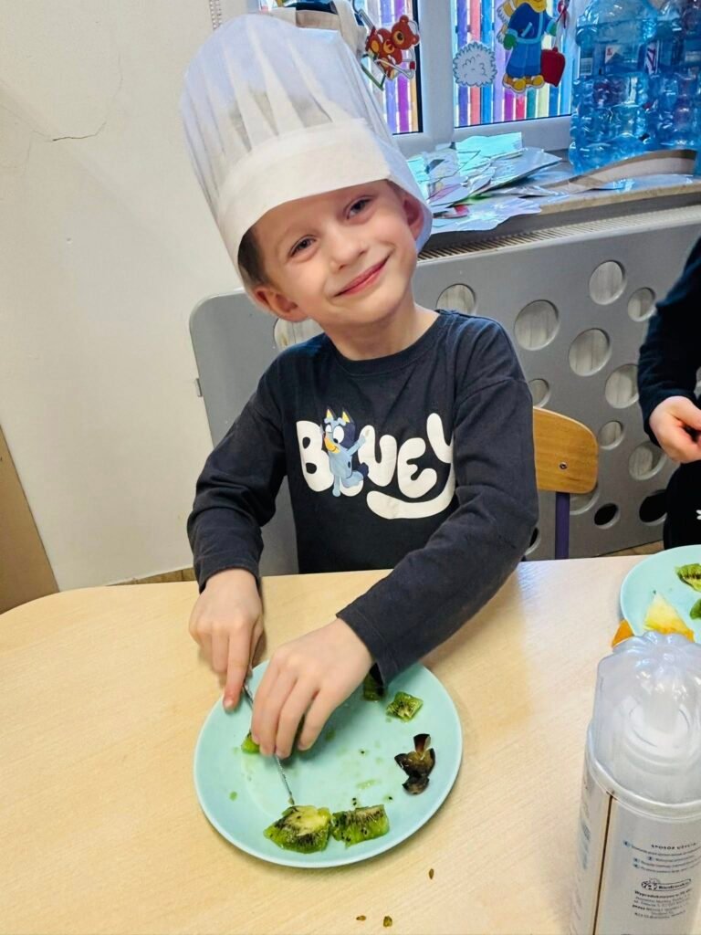 Najwięcej radości sprawiło jednak ozdabianie! Kolorowe owoce, bita śmietana i posypki pozwoliły dzieciom puścić wodze fantazji. Każdy gofr był wyjątkowy – tak jak jego autor.