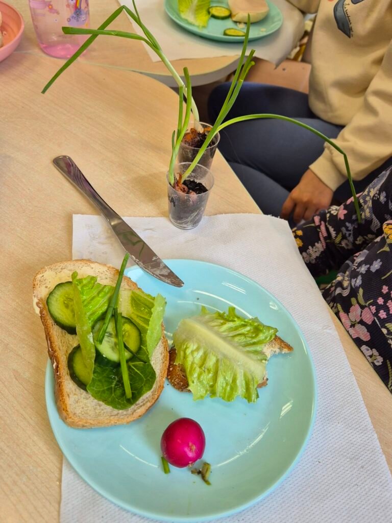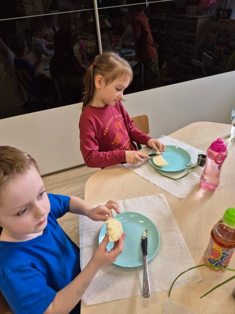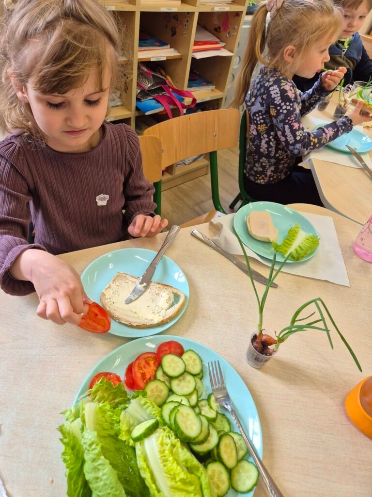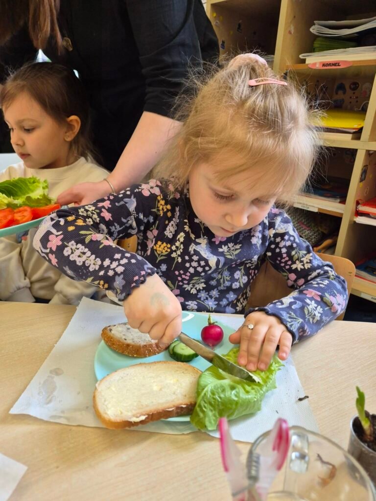 Wilczki z ogromnym zaangażowaniem przygotowały dziś wiosenne kanapki, wykorzystując szczypiorek, który same wyhodowały.