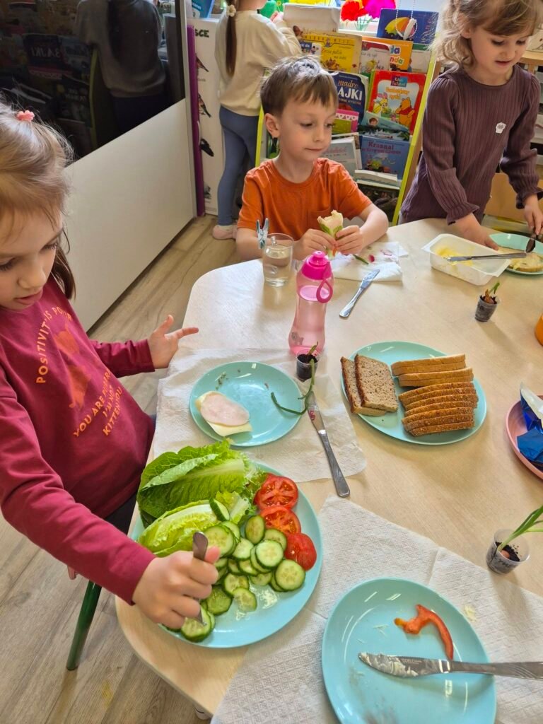 Liski wybrały się na zakupy a następnie już w przedszkolu, dokładnie umyły warzywa, kroiły je i samodzielnie przygotowywały pyszne, wiosenne kanapki.