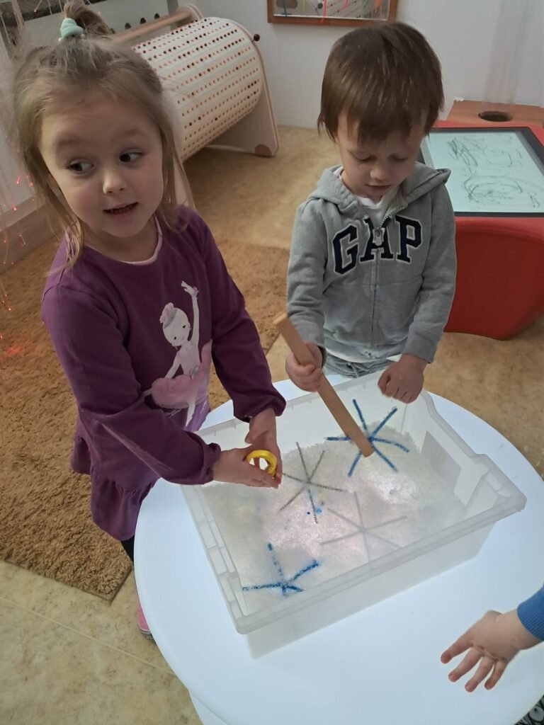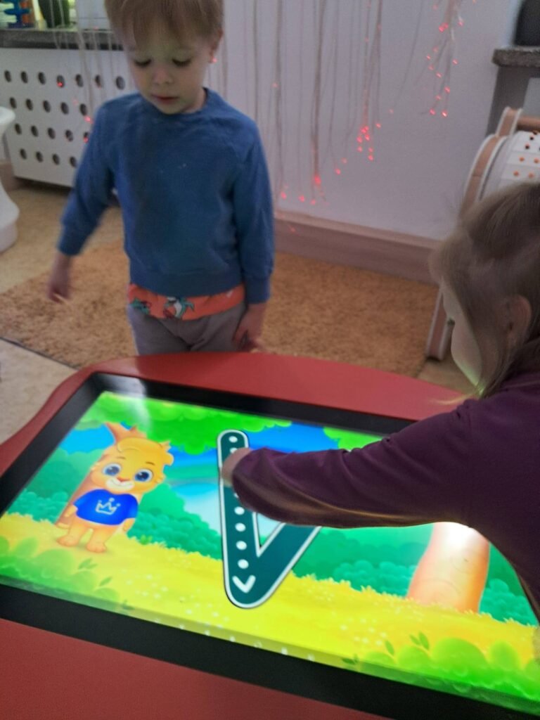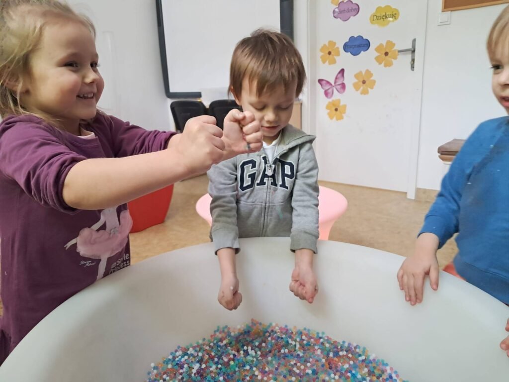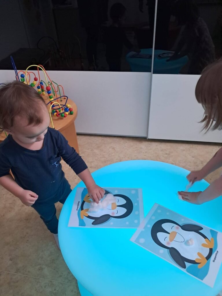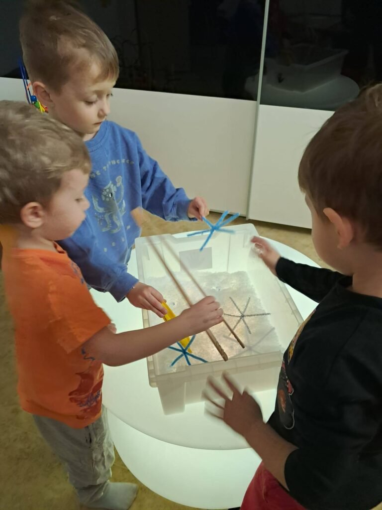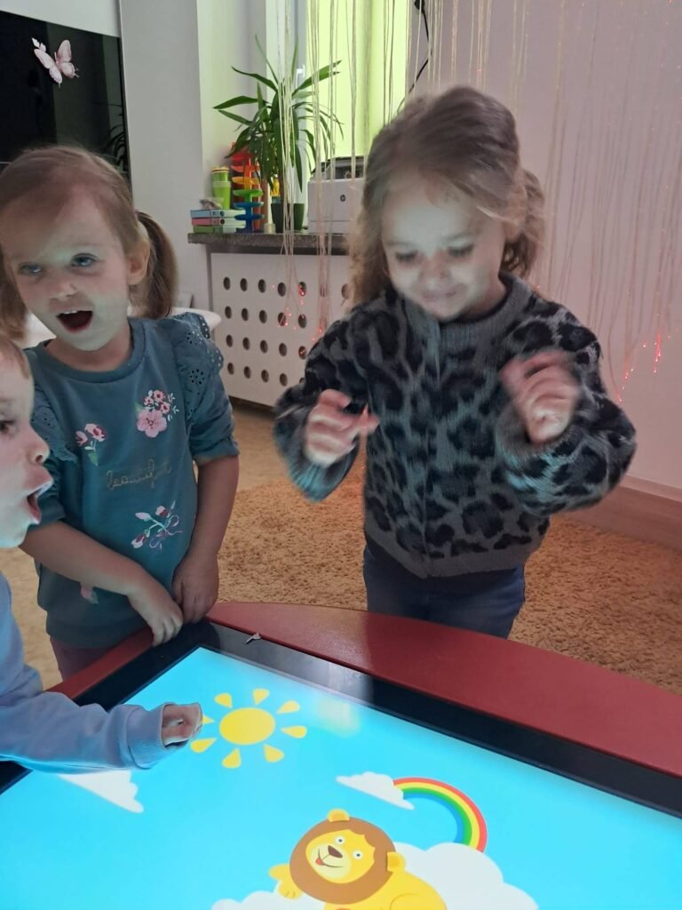 Sala Doświadczenia Świata to wyjątkowe miejsce, w którym dzieci mogą bezpiecznie odkrywać, doświadczać i rozwijać swoje zmysły. Podczas zajęć z integracji sensorycznej stymulujemy wzrok, słuch, dotyk, równowagę i czucie głębokie, wykorzystując światło, dźwięki, faktury oraz interaktywne elementy otoczenia. To przestrzeń sprzyjająca wyciszeniu, koncentracji, ale też swobodnej aktywności i radości z odkrywania. Zajęcia wspierają rozwój emocjonalny, motoryczny i poznawczy dziecka, pomagają regulować napięcie oraz wzmacniają poczucie bezpieczeństwa i sprawczości. Co najważniejsze – dzieci świetnie się bawiły! Było dużo uśmiechów, ciekawości i radosnego odkrywania świata wszystkimi zmysłami.