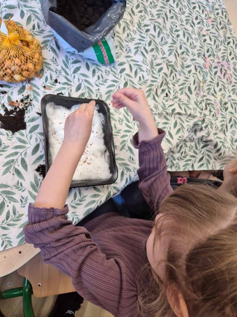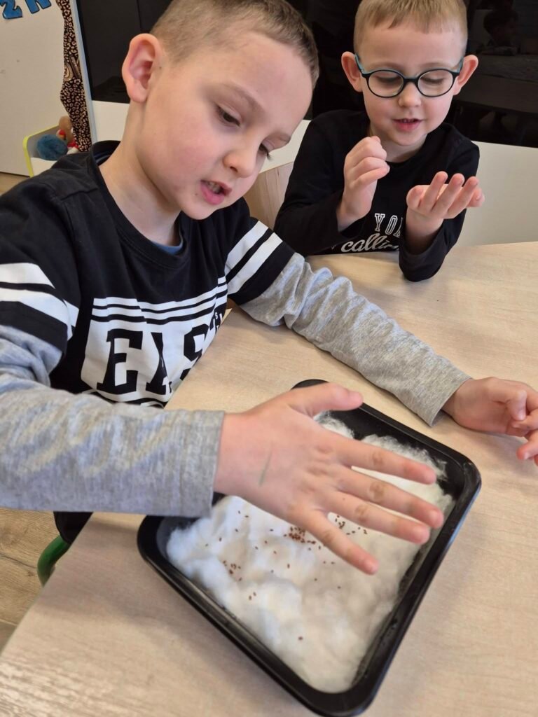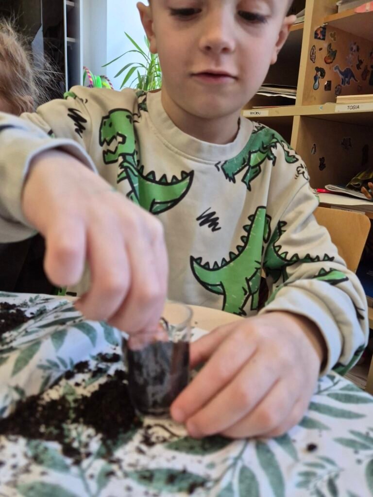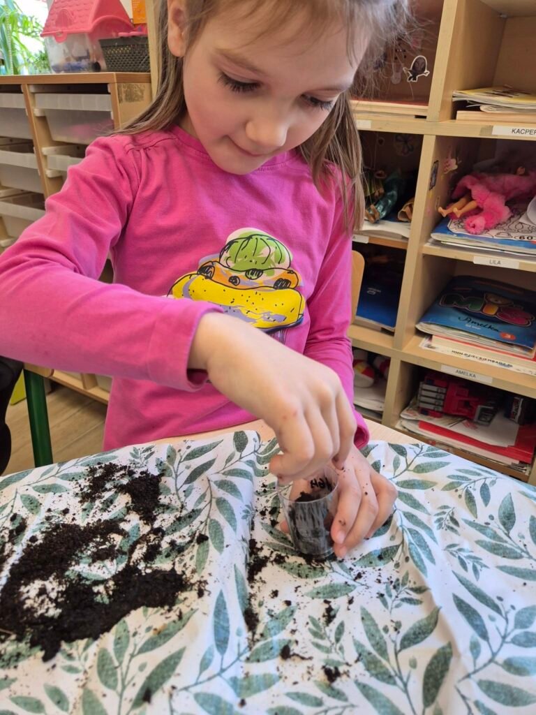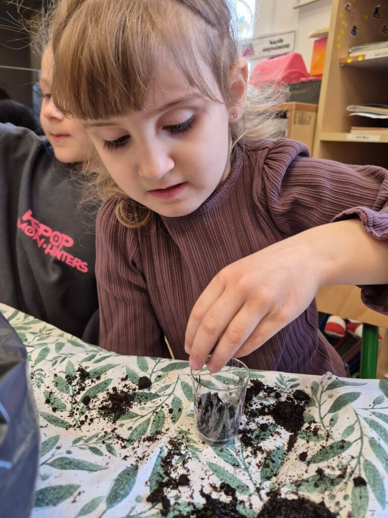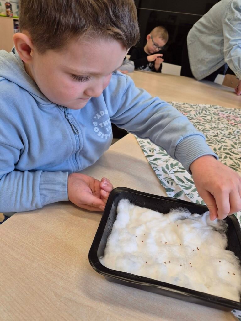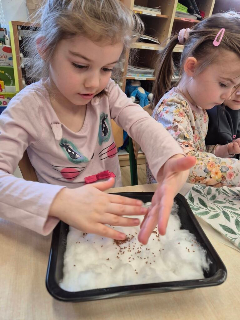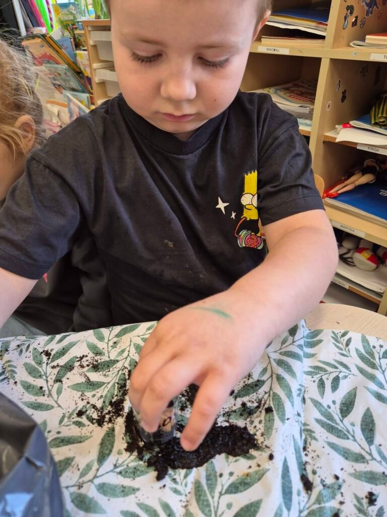 Podczas wspólnego sadzenia rozmawialiśmy o tym, czego rośliny potrzebują do wzrostu – słońca, wody i troskliwej opieki. Teraz każdego dnia będziemy obserwować, jak z małych nasion wyrastają zielone roślinki.