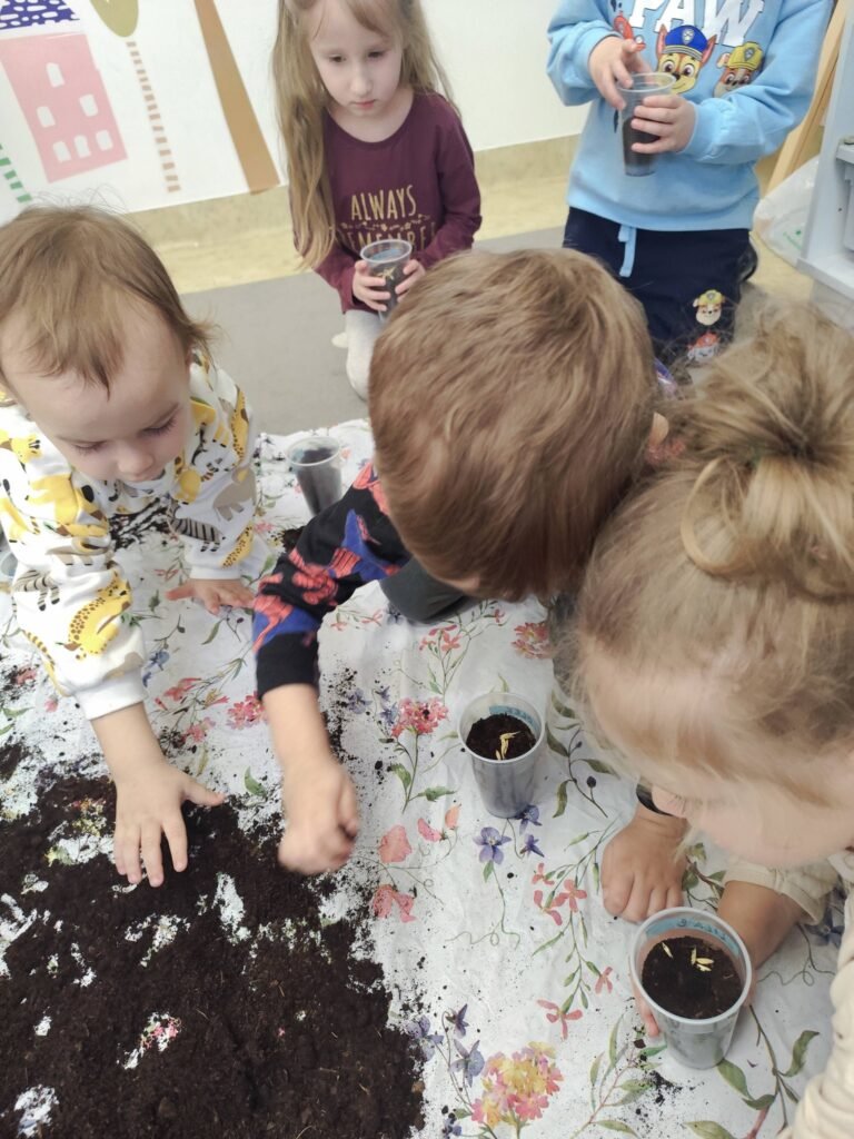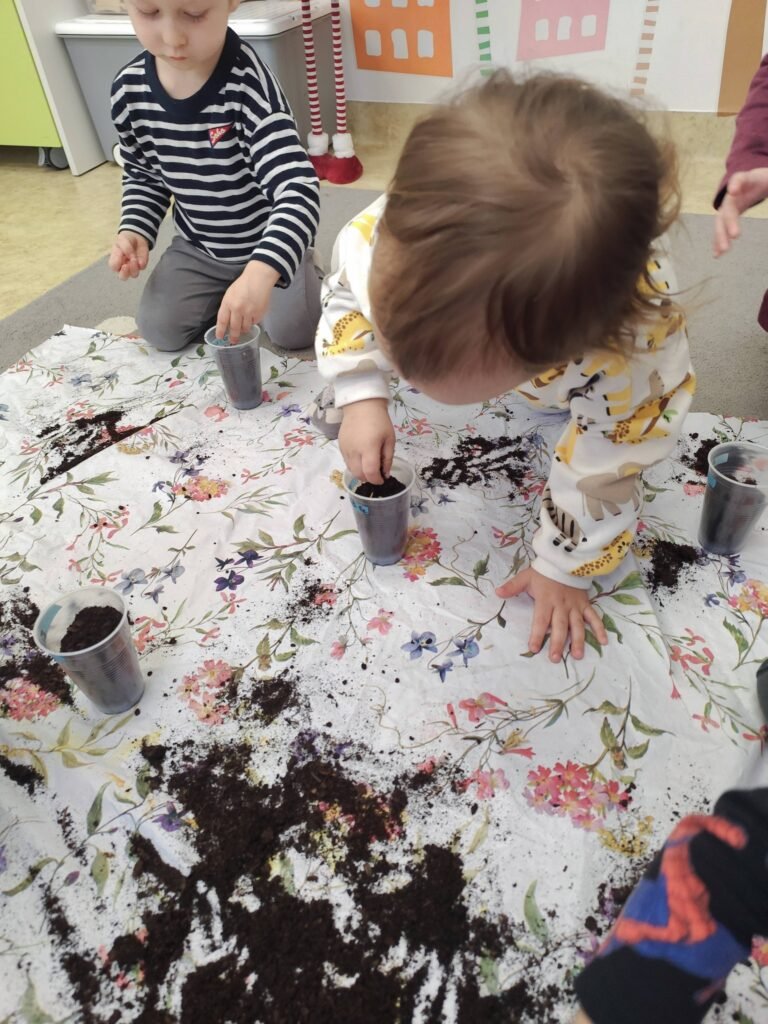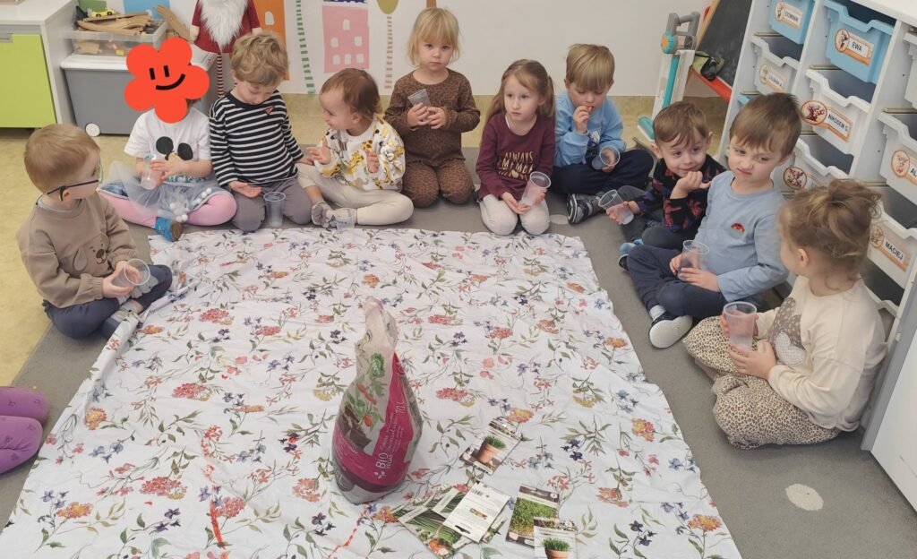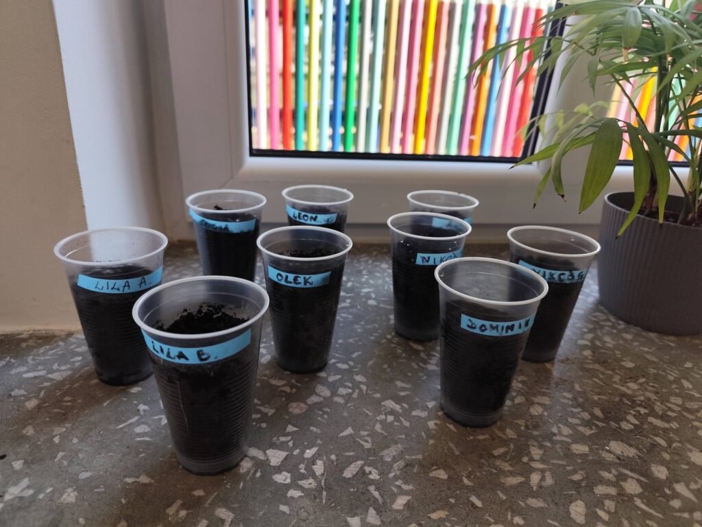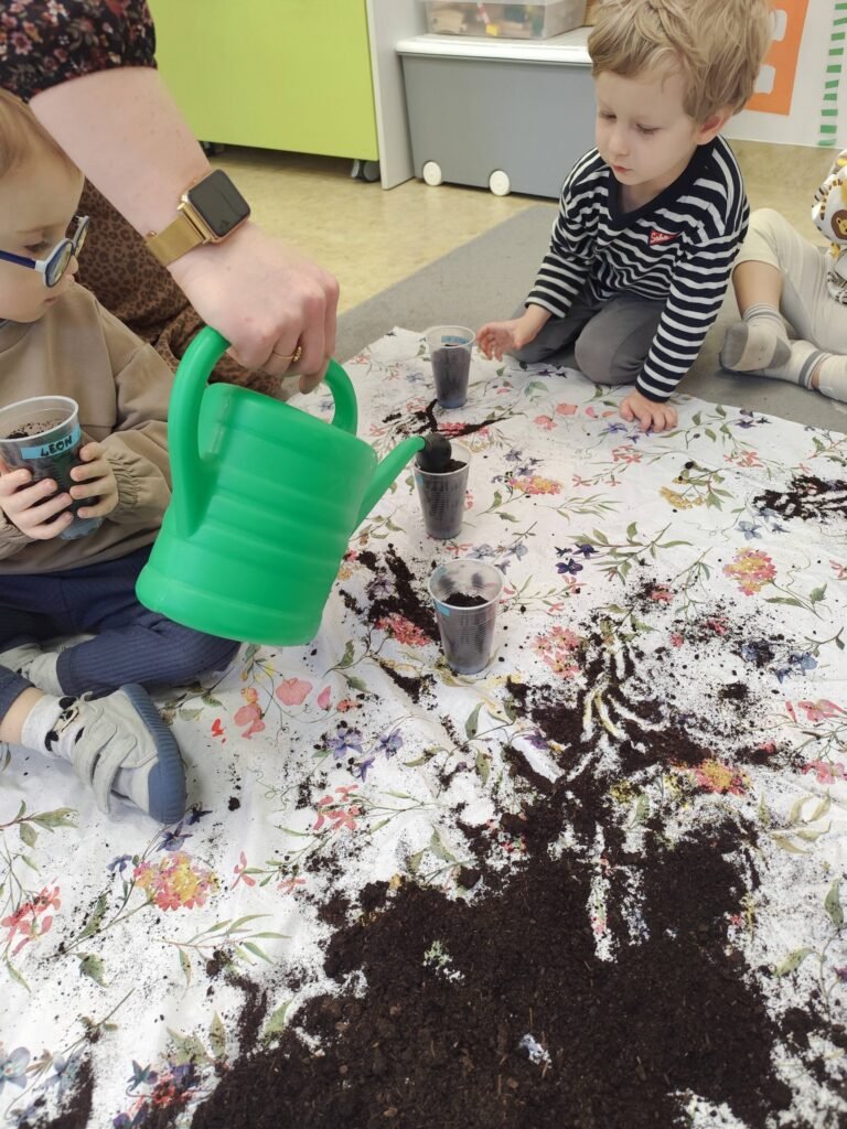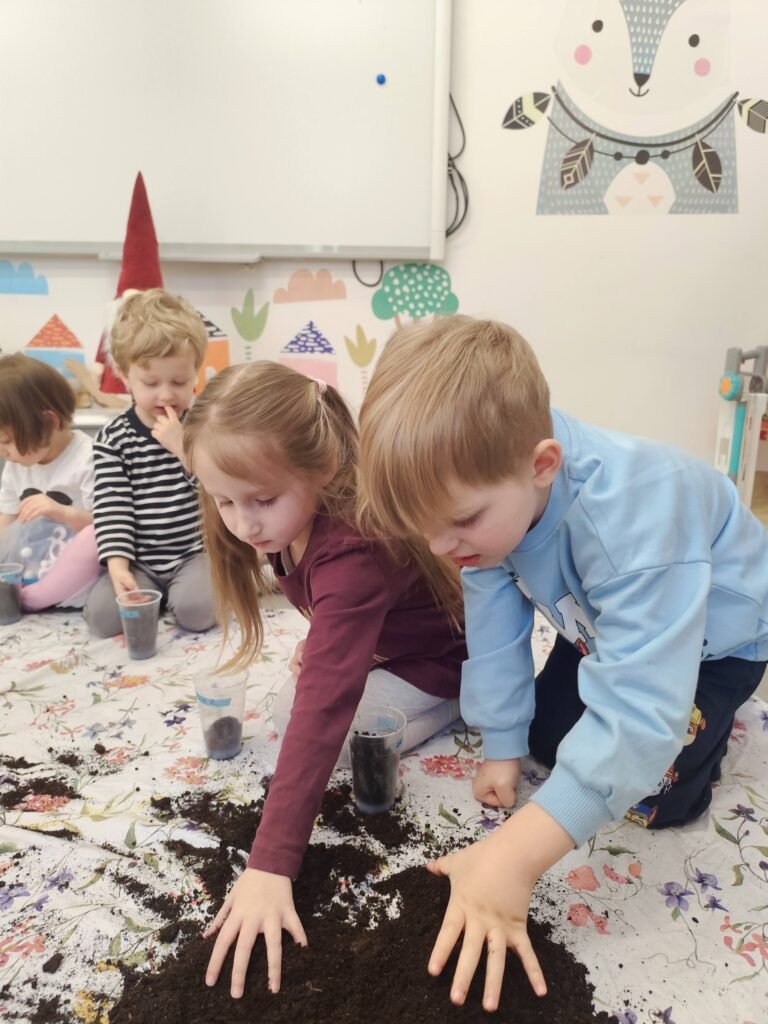 Dzieci z grupy Sarenki posadziły rzeżuchę i owies wielkanocny. Teraz czekamy, aż pojawi się zielona, świąteczna dekoracja.