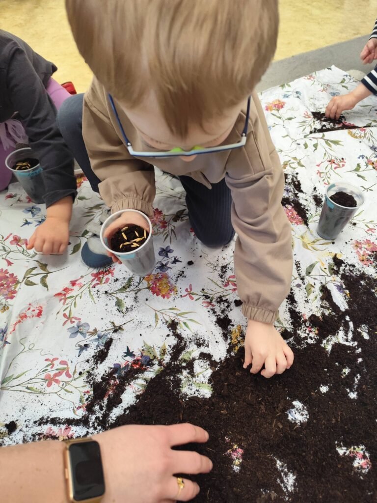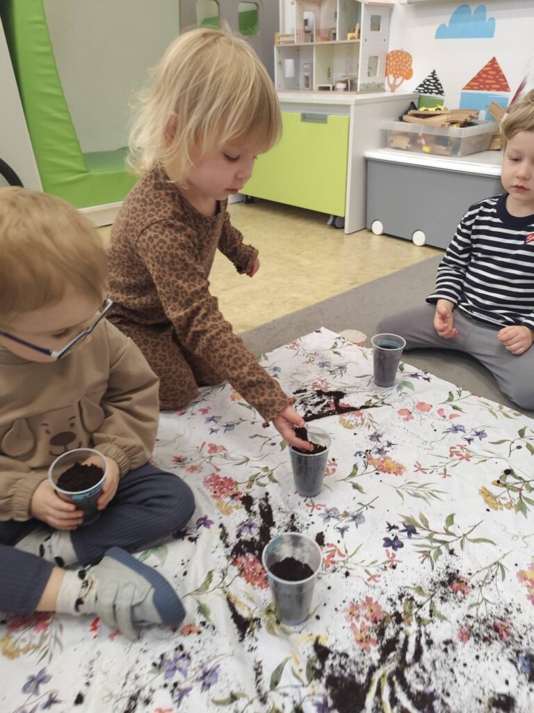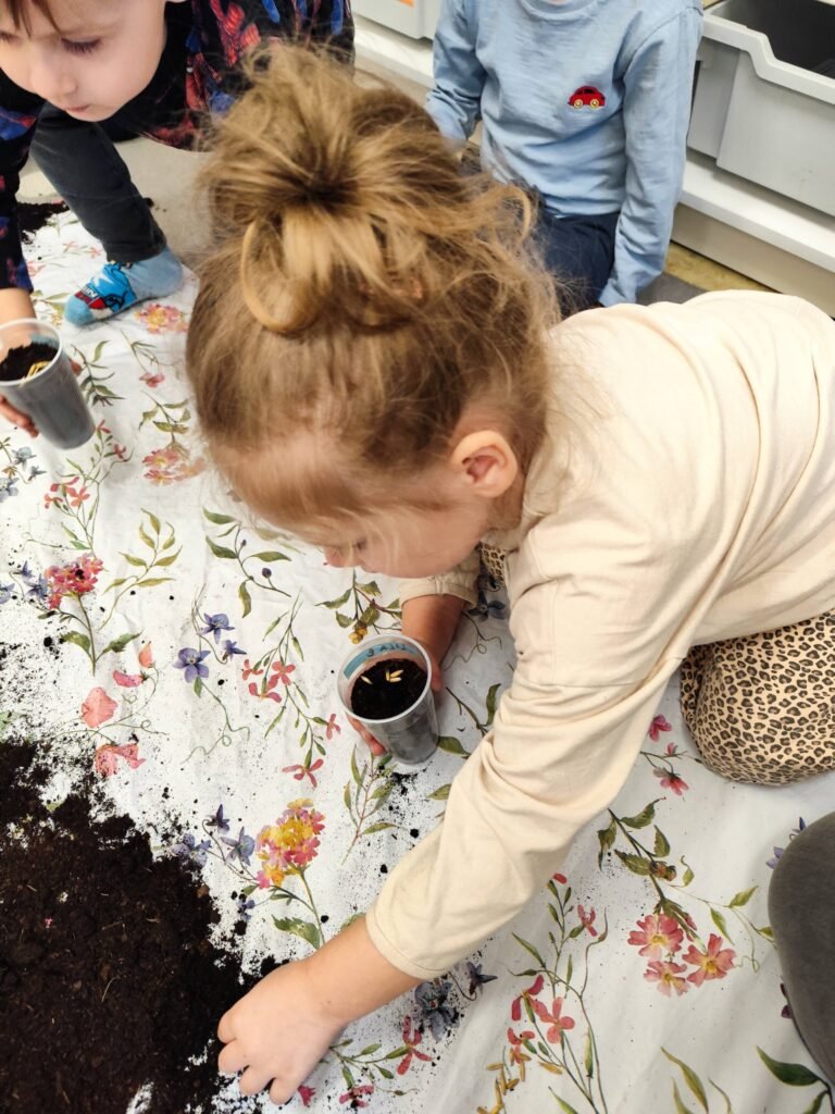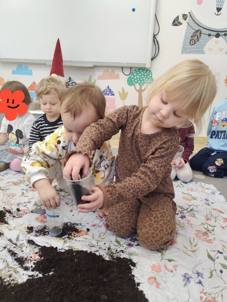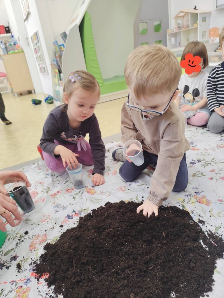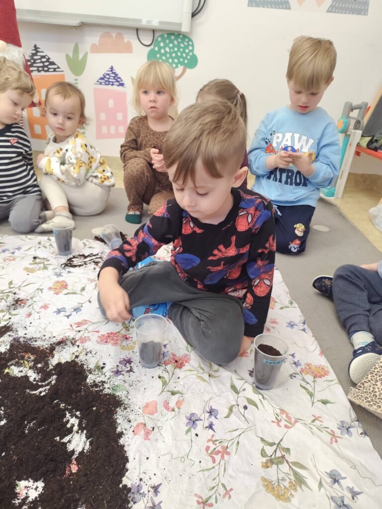 Dzieci z grupy Sarenki posadziły rzeżuchę i owies wielkanocny. Teraz czekamy, aż pojawi się zielona, świąteczna dekoracja.