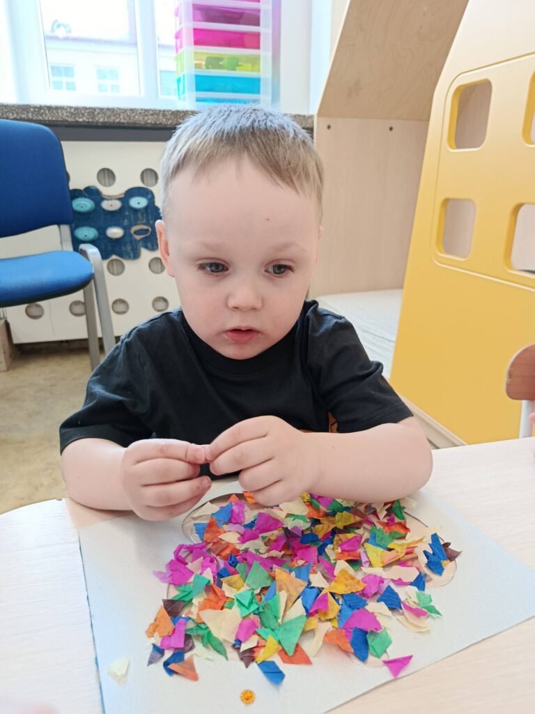 Grupa Motylków i Biedronek z ogromnym zaangażowaniem tworzyła piękne witraże w kształcie motylków. Podczas zajęć ćwiczyliśmy precyzję ruchów, rozwijaliśmy wyobraźnię i bawiliśmy się kolorami.
