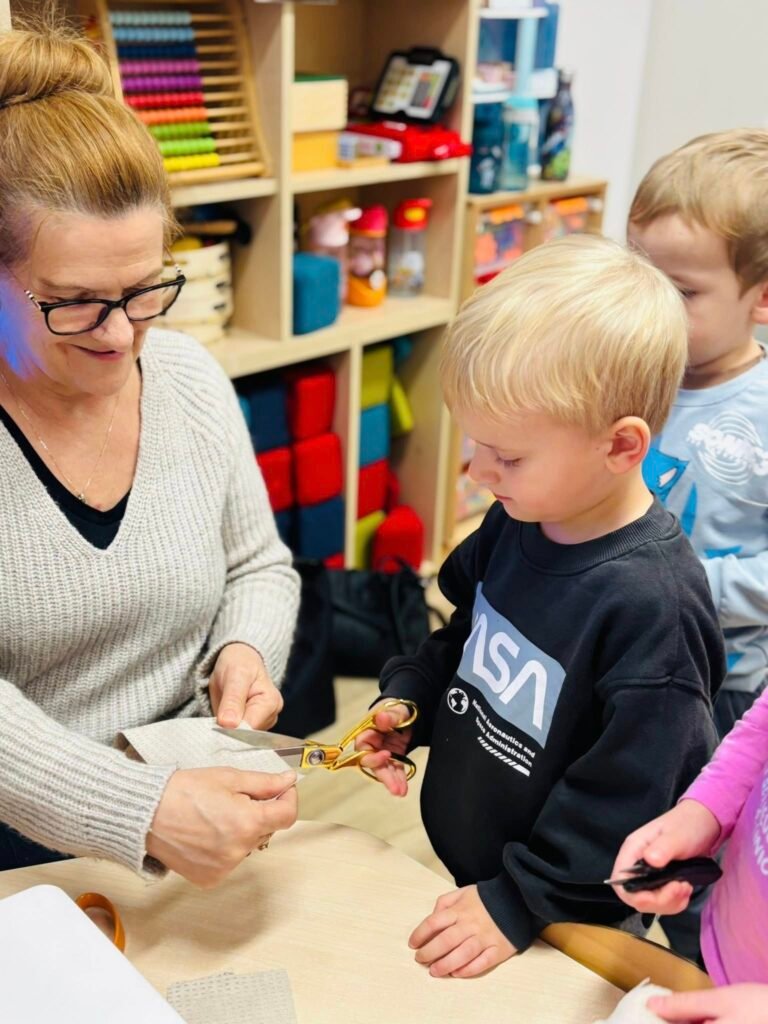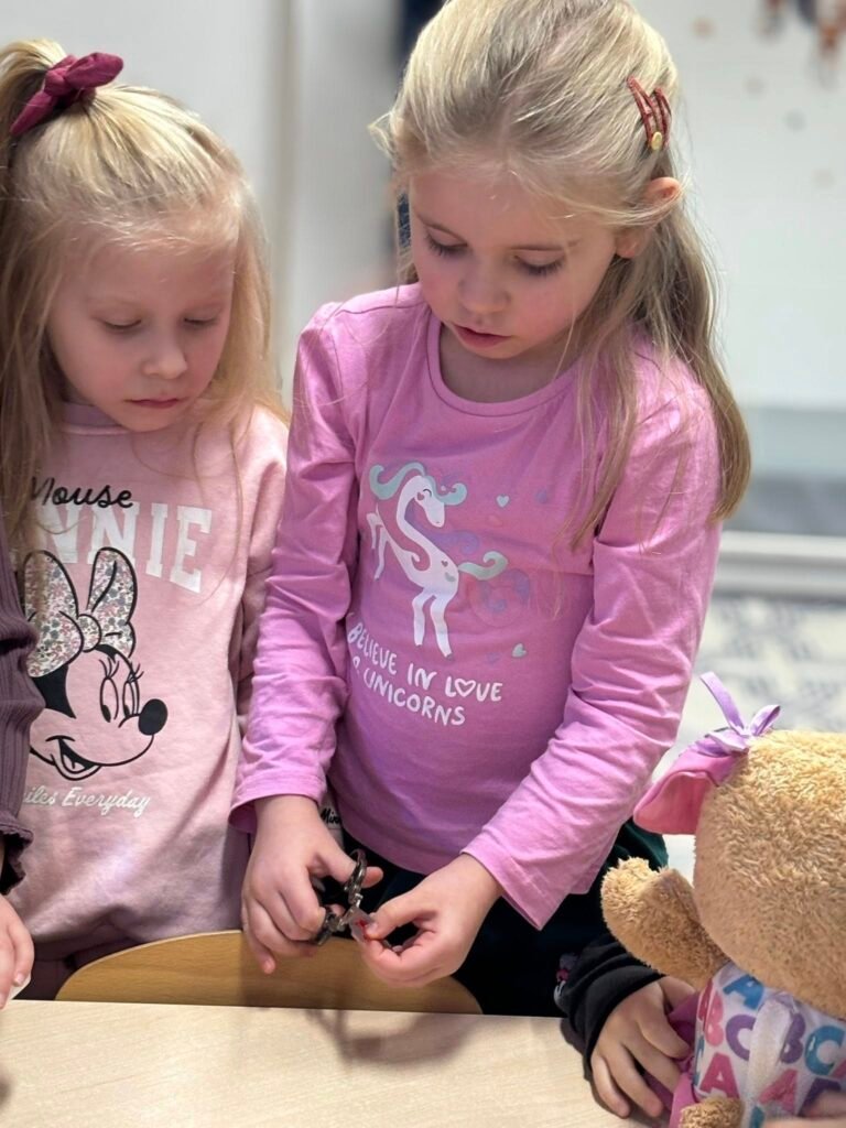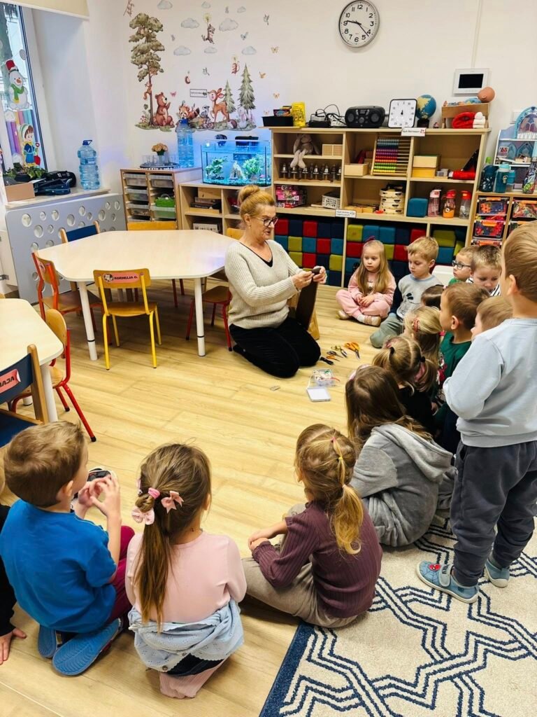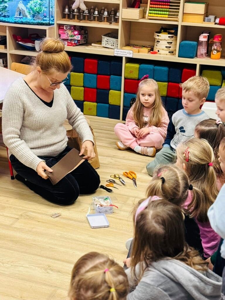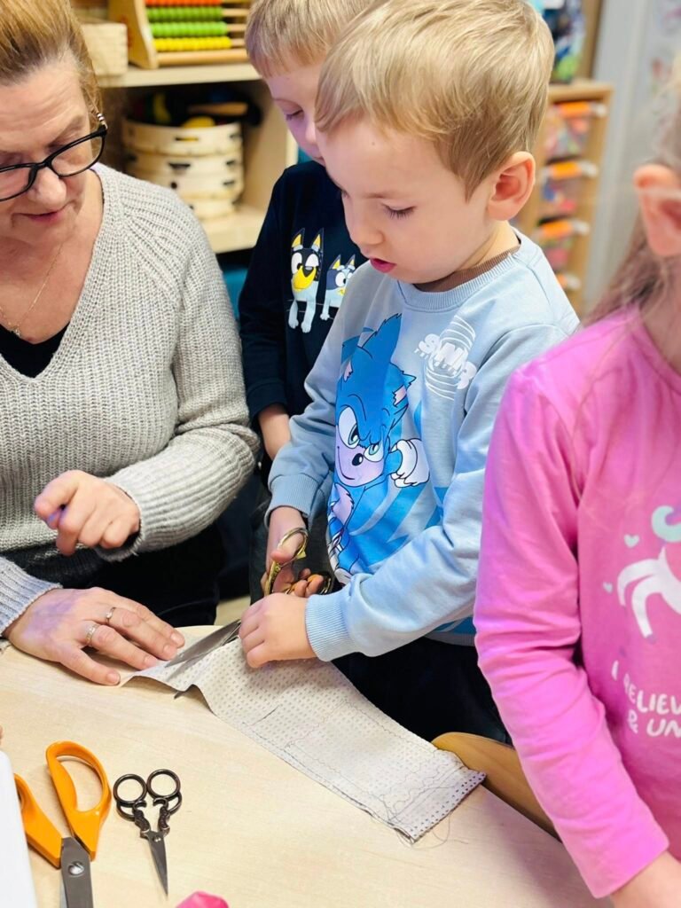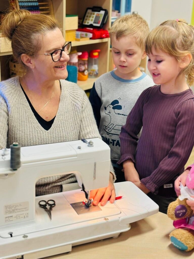 Dziś gościliśmy w naszym przedszkolu Panią Marysię, która z zawodu jest krawcową. To ona wprowadziła dzieci w tajniki swojej pracy. Przedszkolaki z wielkim zaciekawieniem oglądały różnej wielkości i koloru guziki, szpulki z nićmi oraz materiały krawieckie. Okazało się, że praca krawcowej, chociaż z pozoru przyjemna, wcale nie jest łatwa. Z całego serca dziękujemy za poświęcony czas i wspaniałe zajęcia