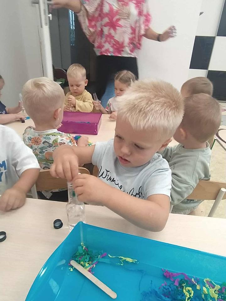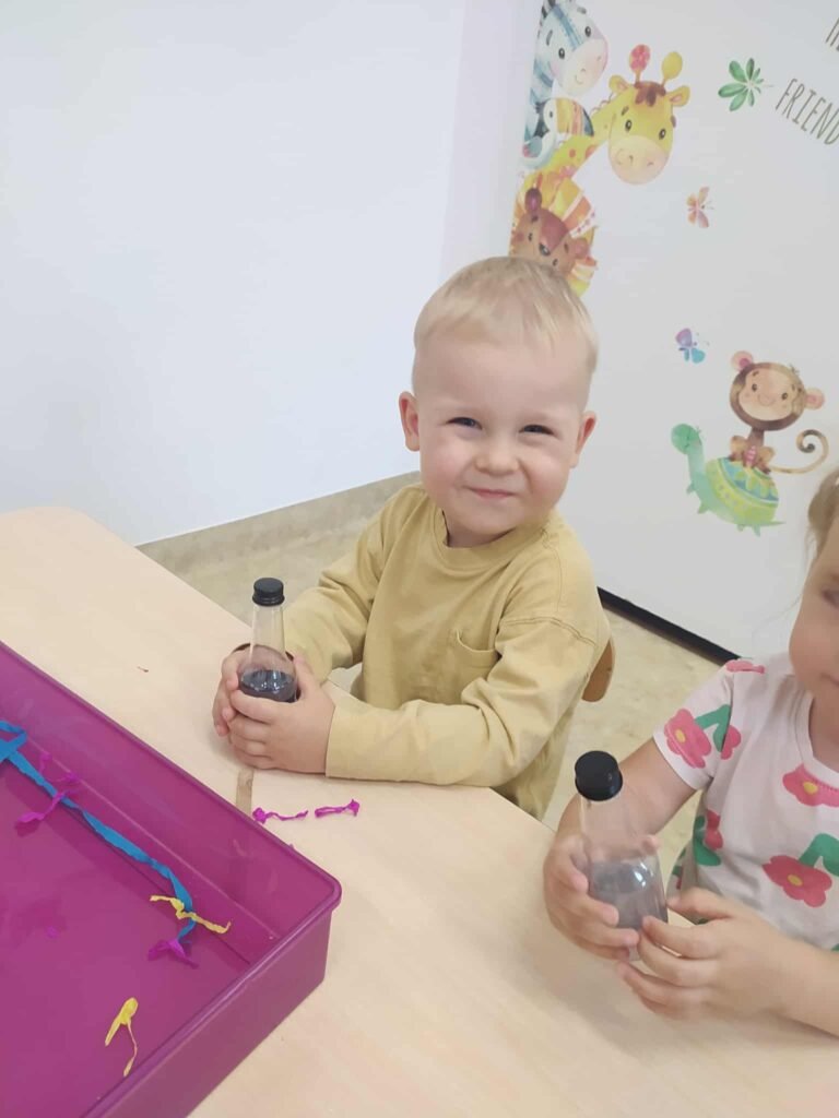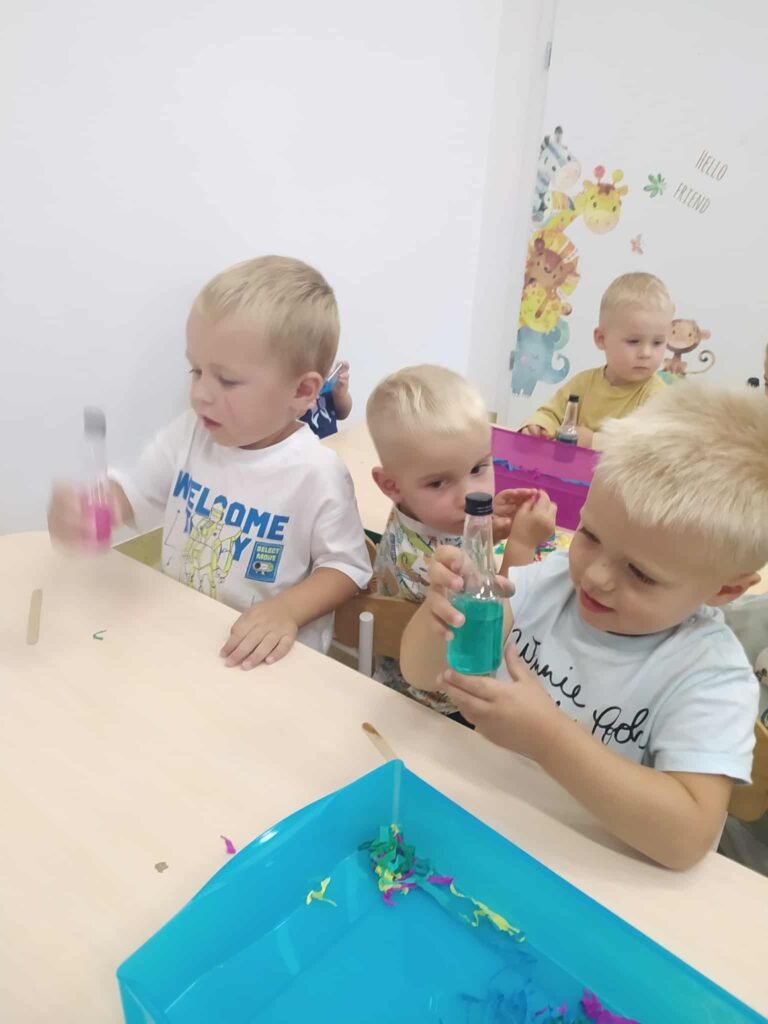 Butelki sensoryczne wykonane samodzielnie przez grupę Motylków. By Gadu Gadu2025-09-15Leave a Comment on Zabawy sensoryczne